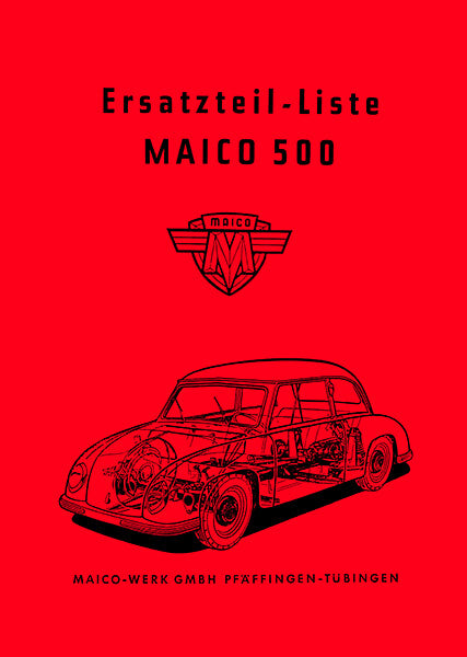Ersatzteilkatalog für den Maico 500 Kleinwagen, Die Einzelteile des Wagens sind abgebildet und beschrieben, 70 Seiten, DIN A4