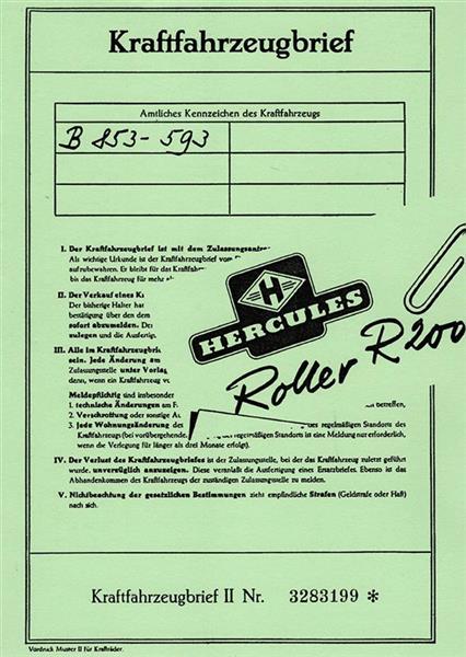 Ausführliche Beschreibung für Hercules R200 Roller, wie ein Prospekt konzipiert mit vielen Abbildungen, technische Daten, 32 Seiten, DIN A5