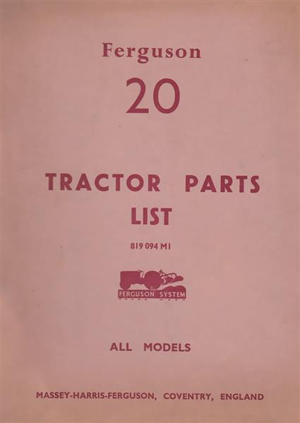 Massey Ferguson Typ 20 Parts List